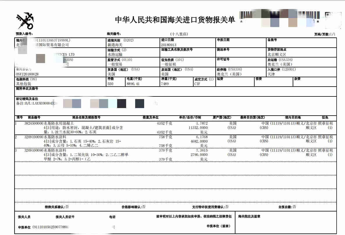 水基涂料進(jìn)口報(bào)關(guān)-非危險(xiǎn)品