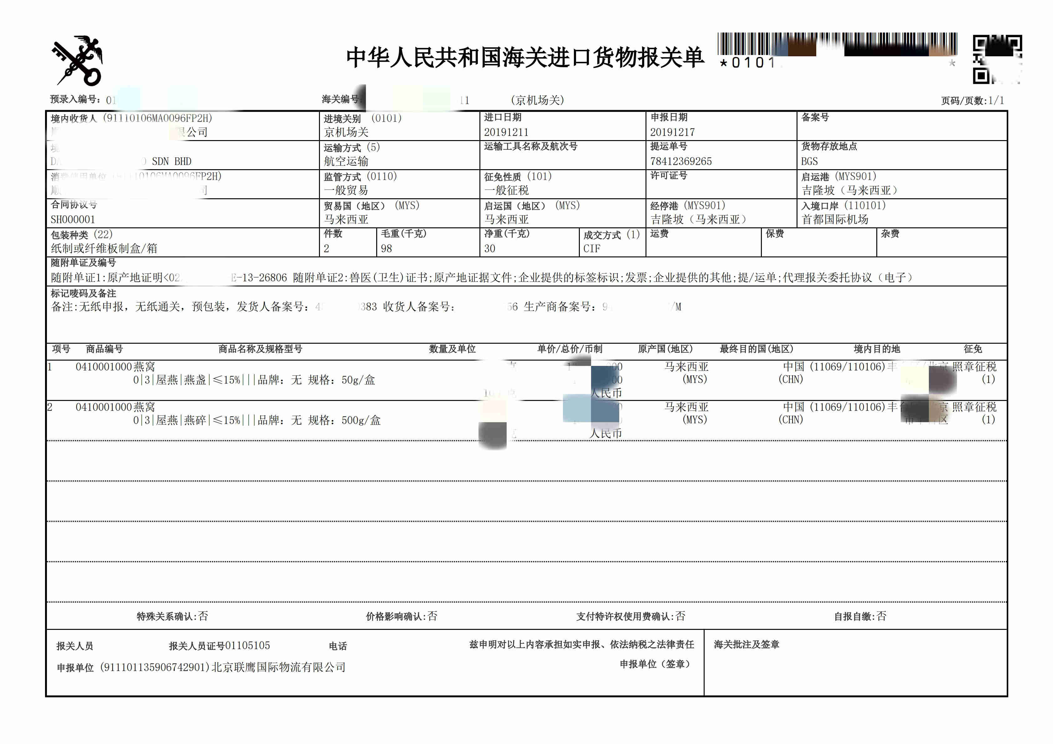 燕窩進(jìn)口報關(guān)