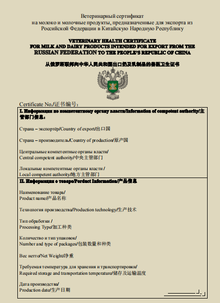 (俄羅斯輸華乳品衛(wèi)生證書樣本)